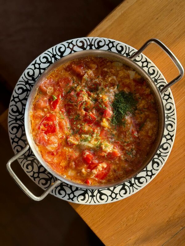 Как я завтракаю на ФудСити? Для шефов и владельцев многих мест, в которых вы любите есть, обычное дело — ездить на ФудСити в будни утром, чтобы до открытия закупиться самым свежим для своей кухни. Вот и я люблю здесь бывать в это же время — меньше людей и машин, да и продавцы сговорчивее, поэтому идеальное место для завтрака шефы-друзья тоже подсказали. Чайхана «Анор» уже мелькала в подборках, вот настало время и для полноценного обзора. Итак, чем именно я люблю здесь завтракать: — Яичница с помидорами (270₽). За этим скромным названием скрывается вариация на полноценный турецкий менемен. Хорошая порция, приготовлена отлично. — Неожиданно, но на завтрак я не против отведать шашлычка. А Наполеон тут шикарный (440₽). Рекомендую! — Ну и главный местный хит — это сырники (240₽). Ну не могу после них я есть сырники за 700₽ в центре Москвы: эти на пять голов выше и вкуснее. Снаружи корочка хрустит, внутри нежнятина, кайф! И если вы уже обратили внимание, цены тут из прошлого — таких уже нигде нет + очень вкусно!