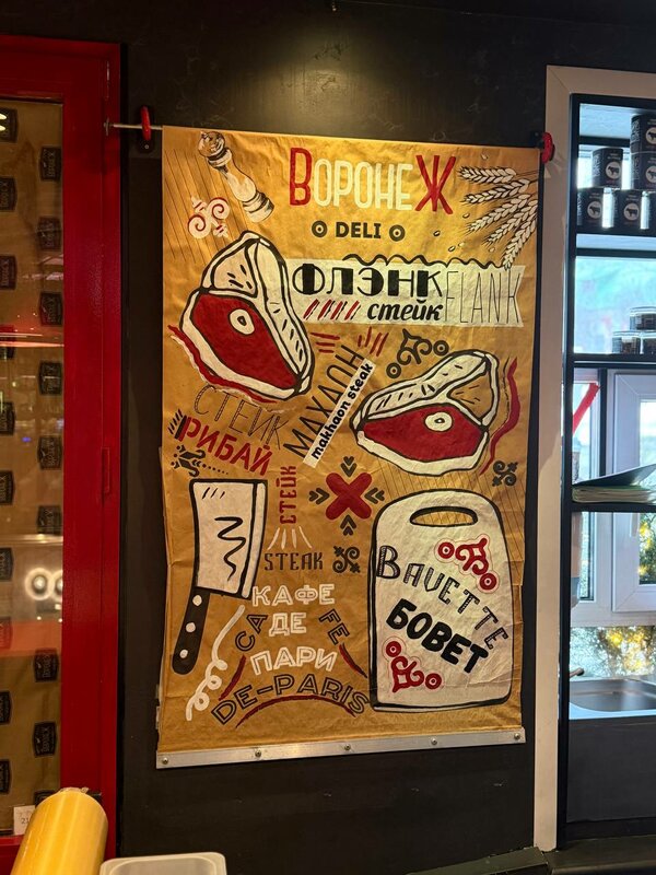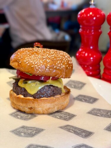 Все еще топ? Сколько уже работает закусочная «Воронеж»? Ну лет 10–11 точно, по-моему, открылись они в далёком 2015 году. Почему они? Потому что столько же на втором этаже работает и одноимённый ресторан. И вот на днях я задался вопросом — как там поживают их легендарные бургеры? Помню, как в своё время они просто разорвали всю Москву, настолько они были вкусные. Внутри, как и 11 лет назад — полная посадка, столик пришлось чуть-чуть подождать. Долго не мудрил, взял всё по классике: Коуслоу (380₽) и картофель фри с домашним имбирным майонезом (340₽) — классическое сочетание под бургер. Коуслоу идеальный, а вот картошка фри мне больше по душе брусочками — она вкуснее. Мраморный чизбургер (690₽) — всё же я пришёл к тому, что идеальная прожарка для бургера — это медиум велл: всё ещё сочная и не расползается, как медиум. А чизбургер шикарный, вот ровно то, что я хотел. Знаете то чувство, когда прям хочется этого сочетания — бургер с картошечкой. Многие идут закрывать его в Мак, но советую доехать сюда. Да, здесь дороже, но по-честному — это земля и небо. Кстати, пока ждал заказ, насчитал четверых людей, которые ели бургеры ножом и вилкой. Я понимаю, что каждый точит как он хочет, но все же я удивлён.