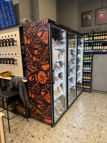 Все просто — любимый пивной магазин, отличный ассортимент, много вкусняшек к пенному. Кроме кранов есть и холодильники с бутылочным и банками, рекомендую.