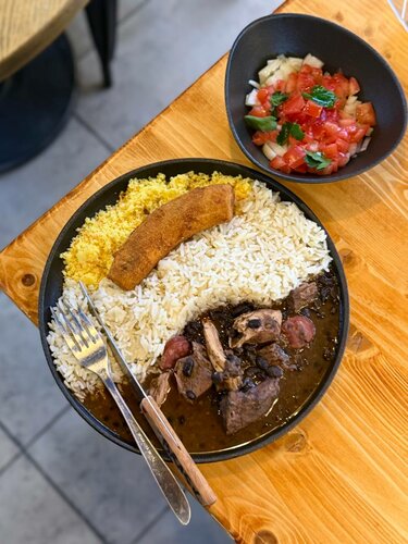 Этой встречи не должно было быть, но она состоялась! Вряд ли хотя бы один фантаст мог себе представить, чтобы буузы могут встретиться с бразильской кухней! Но факт есть факт — я с огромным удовольствием отобедал бразильской фейджоадой (750 ₽), а закусил это всё шикарными буузами (109 ₽/шт). Произошло все в Фудхолле «Дружба» — именно там есть корнер «Стейки и бразильская кухня», в котором готовит бразильский повар Алекс. Я пробовал эту кухню первый раз и выбрал фейджоаду — блюдо из чёрной фасоли, мяса, салата и фарофы (маниоковой муки). Мне понравилось, но чего-то не хватило. И тут на другой стороне фудхолла я заметил, что там открылись буузы! Я очень рад тенденции, что их в Москве становится больше, и три штучки залетели как к себе домой 😄 Не, ну такое возможно только в Москве! Подписывайтесь на тг канал "НеРестораны", там много интересного.