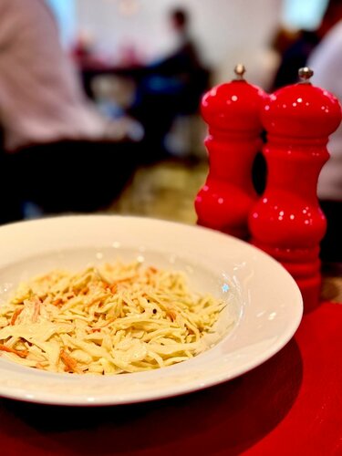 Помните, как недавно Минпромторг очень сильно волновался, что у нас менее 1% заведений — это места с русской кухней? Поволновались, пообсуждали, а потом взяли и подняли налоги 😁 Поэтому, когда на днях увидел, что в столице открылось новое, да ещё и русское бистро, я подумал: ну что это за герои? У нас русскую кухню вообще слабо едят в последнее время, да ещё с такой ситуацией на рынке! В общем, принял решение — надо ехать смотреть! Называется место «Тот самый гусь», и по сути это небольшое сити-кафе в новом ЖК, в котором весь акцент как раз на блюда русской кухни. Внутри светло, хорошо, персонал улыбчивый. А вот что я попробовал: Сельдь под шубой (300₽) — хорошая порция классического новогоднего салата. Да, в новых местах люблю брать первым делом его, потому что приготовить вкусным несложно — главное не испортить. Так сразу понимаешь: рукожопый повар или можно ожидать дальше чего-то хорошего. Здесь селёдка отличная! Пельмени с гусем в сливочном соусе (400₽) — давно не ел пельменей с гусем, и в этом случае получил максимальное удовольствие. Тесто хорошее, не переварили, начинки много, соус сочетается гармонично. Котлеты из щуки с пюре (500₽) — немного смутила подача, какая-то она неказистая, но на вкус 10/10. Одни из самых вкусных щучьих котлет за последнее время. В общем и целом, что скажу — с такими ценами и уровнем еды это заявка на успех! Крайне рекомендую посетить. Тем более в такое нелёгкое время поддержать рублём тех, кто готовит нашу русскую еду, а тем более вкусную, — милое дело!
