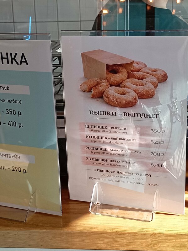 Пышки вкусные. Цены в меню в картах не актуальные , пышки стоят не 25,а 35/шт.