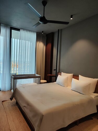 Очень понравился отель. Были недолго одни сутки, на разведке. Впечатлила архитектура, ремонт, минималистичный японский дизайн. Видео, что всё сделано с душой. На мелочах не экономили. Много мерчей и маленьких подарков. Из активностей я попала только на мастер класс по глине. Очень довольна, занятие такое медитативное и расслабляющее, супер преподаватель! Для тех кто любит творить лучший отдых. К сожалению, времени на другие активности не хватило. Были вдвоём с ребенком, поэтому в основном просидели в игровой комнате. Оставить одного можно только с 5ти лет, будьте к этому готовы, сопровождающий для ребенка на время активностей за доп. плату. Игровая просторная, все чисто, хорошее наполнение. Есть открытая площадка, небольшая, но погулять можно. По территории тоже можно прогуляться, мы даже не успели всё обойти. Бассейн оценить не могу, был холодный ветер, никто не купался, хотя вода теплая. Понравилась кухня, блюда интересные как в ресторане. Даже десерт нам собрали с собой, так как не смогли его съесть, очень приятно. Один только минус это завтрак с 9 часов, для нас было оочень поздно, так как встаем в 6-30. Место у отеля тоже уникальное, как будто на краю света. Летом там шикарное море, есть лиман, и рядом степь и дикие места, да мало магазинов, зато только в таком месте можно устроить интересные активности, квадроциклы, виндсерф. Надеюсь ещё посетить это место и уже попробовать эти активности.