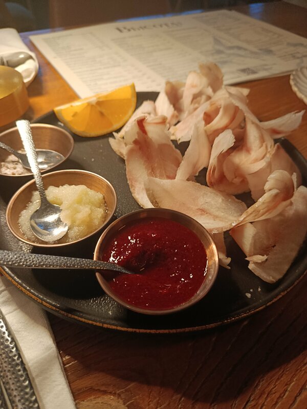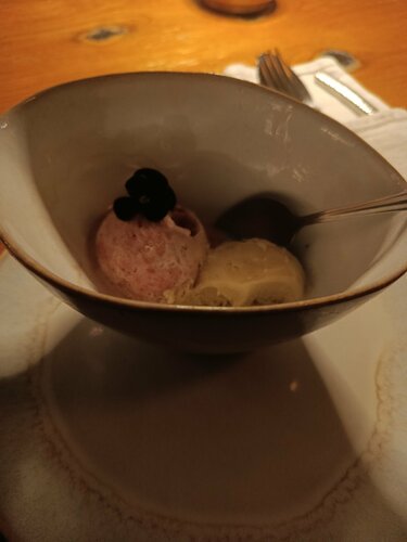 Это мелодия из удовольствия! Восторг и авации. Струганина из муксуна и соуса не оставит равнодушным даже самого утончённого любителя рыбы. Мороженое с саган дайли очень нежное и вкусное. Под живое исполнение скрипки наш вечер наполнился прекрасным настроением. Уютно и вкусно это ничего не сказать, восторг.