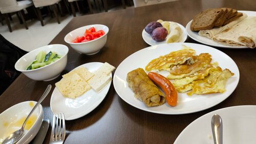 Отличный отель в самом сердце Гюмри. Здание 3 этажа, но есть лифт. Чисто, уютно, просторные номера. Уборка и пополнение минибара каждый день. Есть все, что положено на 3* и даже весы в номере есть.)) Единственный момент завтрак включенный в стоимость начинается с 10:00 (поздновато) А сам завтрак великолепен. Ресепшен. Администраторы молодцы.