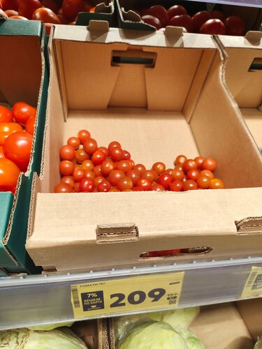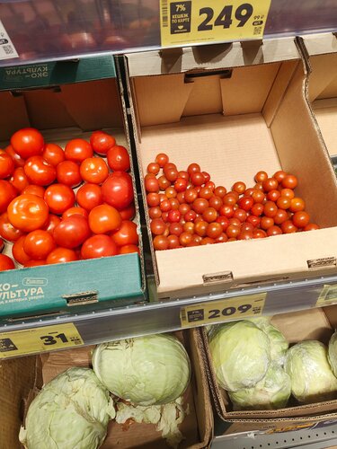Сегодня 16.02.26 в 18:20 совершал покупку в данном магазине, на кассе продавец озвучил цену более чем в полтора раза выше, чем на ценнике.Я показал фото на котором зафиксирована цена рядом с товаром, и попросил пробить по указанной цене. Продавец начал рассказывать, что мол они не успевают менять ценники, и сказал, что будет либо пробивать по своей цене, либо возвращайте товар. Считаю это грубым нарушением прав потребителя. Чтобы не быть голословным, фото с помидорами и ценой прилагаю. Хотел устроить разбор ситуации с администратором, но из-за того что был с ребёнком, и за мной образовалась очередь — не стал упорствовать. В данный магазин больше ни ногой!