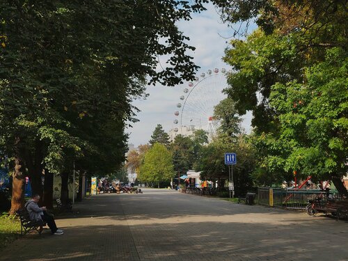 Сам парк большой и приятный. Но, как водится в нашем дорогом городе, вместо того, чтобы сделать чистый бесплатный общественный туалет и пару качественных детских площадок с горками, качалками, лазилками и каруселями, весь парк захватили рестораны, дурацкие лотки с ширпотребом, дорогущие аттракционы, незнающие конкуренции и бетонные разрушенные основания прежних строений. Единственно, кому хочется сказать спасибо — это людям, которые ухаживают там за птицами, запускают фонтаны, уборщикам и тому, кто догадался запустить аэрацию водоёма летом 2025г. До этого водоём превращался в опасное зловонное болото. Отдельный колорит, конечно, создают персонажи, решившие порыбачить в этом водоёме. Впрочем, естественную убыль населения никто не отменял.