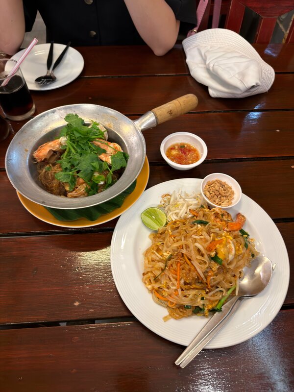 Отличный ресторанчик. Цены демократичные. Меню очень большое. Брали 5 блюд, не доели, потому что не поместилось. Томям вкусный, падтай топ. Креветки супер.