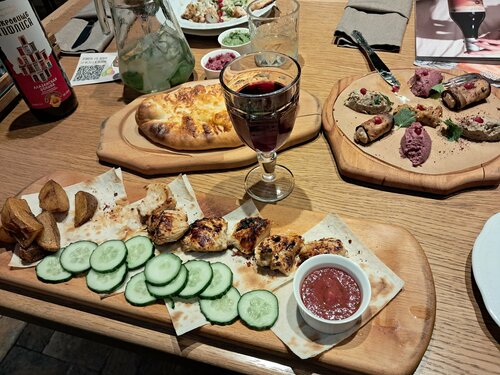 отмечали с подругами 8 марта и мой День рождения. В честь праздника нам устроили маленькое представление с сюрпризом и десертом в подарок, было очень приятно!) Столик уютно огорожен зеленью, можно было заранее выбрать расположение и забронировать понравившийся. Еда вкусная, удивило, что приносят блюда в точности, как на картинке в меню. Единственное, шашлык принесли подозрительно быстро и холодный. И пхали из баклажанов пахнет не баклажанами, а дымом, причем сильно. Официант Ирина И. вежлива и обходительна, всегда ненавязчиво следила за нашим столиком и учитывала все пожелания по меню, спасибо! Общее впечатление позитивное, вернемся к Вам на следующий праздник!)