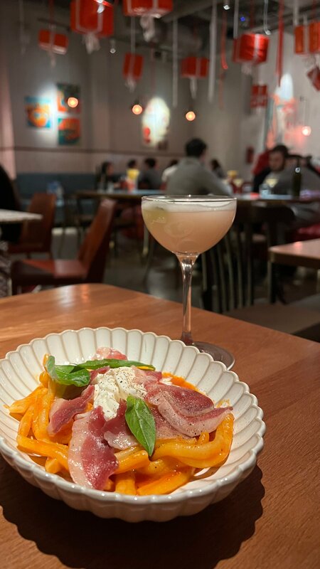 Интересное местечко с хорошим обслуживанием, вкусным, необычным меню и отличными коктейлями. Нашли случайно, проходя мимо, решили заглянуть. Нас заботливо встретили, накормили и напоили))). Отдельное спасибо нашему официанту Диане и другим ребятам, которые обслуживали наш столик. Быстрое обслуживание, вкусные блюда да ещё и комплемент в виде интересного коктейля очень порадовали. Спасибо!