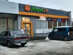 Снаружи очень напоминает "Зимнюю вишню". Спереди оно покрыто чёрными стеклами. Внизу магазин Роллби. Кинотеатр на 3м этаже.