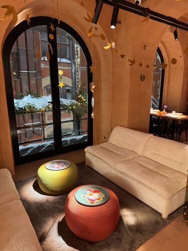 Ходили поужинать: случайно узнали про ресторан из обзоров блогеров. Атмосфера там просто потрясающая: уютно, красиво, мягкий свет, приятная музыка — всё располагает к спокойному, тёплому вечеру. Мы пришли без особых ожиданий, а в итоге остались крайне довольны. Ресторан открылся относительно недавно, однако популярен и место здесь лучше бронировать заранее. Заведение позиционирует себя как «кусочек Италии» в городе: традиционные итальянские блюда с сезонными/авторскими акцентами, винная карта и музыка соответственно тоже итальянская. Интерьер фантастически украшен к новому году: елка, камин, свечи…появилось ощущение уютного шале где-то в Альпах. Блюда оказались такими же удачными, как и сама обстановка. Всё, что мы заказали, было вкусным, свежим и аккуратно поданным. Видно, что кухня уделяет внимание и качеству ингредиентов, и эстетике — каждое блюдо выглядело аппетитно. Брали ризотто, равиоли с креветками и десерты. Равиоли с креветками подаются в сопровождении потрясающего соуса: сливочный, с каким-то пряностями, но не слишком жирный на мой вкус. На десерт подруга брала камень с острова Гарда (муссово-шоколадный): подача 10/10, вкус тоже достоин похвалы. У меня был наполеон: тут без творческой подачи, но идеальное сочетание нежности и хрустящей текстуры. Тонкие, почти прозрачные слои слоёного теста ломаются под вилкой с лёгким хрустом: ммм… Обслуживание тоже оставило хорошее впечатление: спокойное, вежливое, ненавязчивое. Нам не приходилось долго ждать, и в целом ужин прошёл очень комфортно. В общем, Garda стал для нас отличным вариантом для вечерней встречи: красиво, вкусно и с приятной атмосферой: с удовольствием вернулась бы ещё раз.