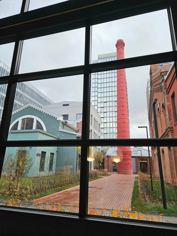 Локация понравилась. Сочетание стильного современного ЖК и старинных зданий дореволционного лакокрасочного завода. Внутри приятно гулять. Все фотографируются с сохранившимися трубами. На территории кластера много ресторанов и кофеен на любой вкус и кошелёк.