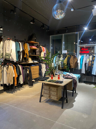 Магазин фирменной одежды, есть именитые бренды. Приятные девушки консультанты, подскажут по ассортименту, даже помогут сэкономить где это возможно. Лишь в немногих магазинах цены остались на уровне среднего, и это один из них. Приобрели худи за 2000 рублей, это просто подарок. Кофта очень качественная, приятный материал. Футболки от 1500 рублей. Есть акции. В клиентский день дополнительная скидка 10 %. Очень приятный бонус.