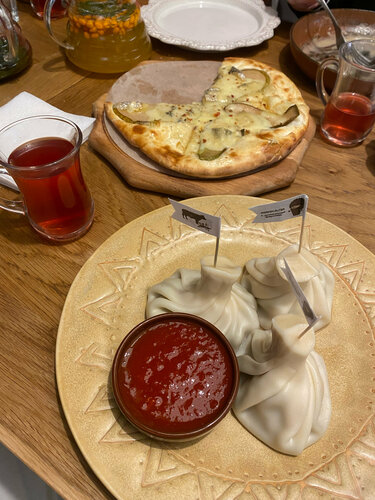 Большой зал, в выходные много людей. Ожидание столика было минут 20. Удивили хинкали по 110 и 170 рублей. Хачапури вкусно, хинкали - нет (мясо рублено слишком плохо, большие кусочки внутри, почти нет сока, принесли хинкали холодными). Авторский чай насыщенный, сладкий. Лагман очень вкусный, лапша самолепная.