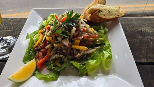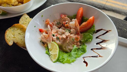 Кафе на первой линии. Заказывали кольца кальмара, осминог на гриле, креветки и креветки с чесноком. Еда нормальная, цена - выше среднего.