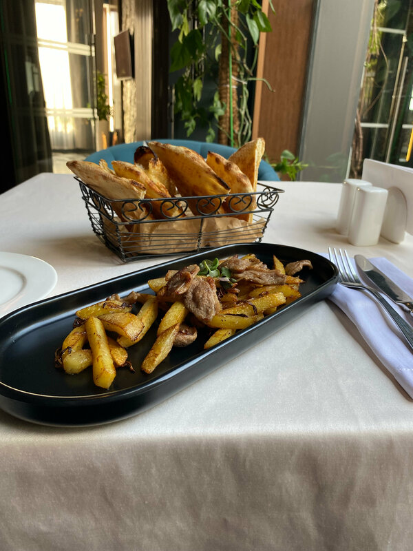 Решил пообедать в этом ресторане, так как рядом работал. Заказал жареный картофель с уткой и лепешку ) не помню как она называется. В целом все понравилось. Было вкусно. Порция маловата и ценник выше среднего. А так все норм. Нужно будет еще что нибудь отведать.
