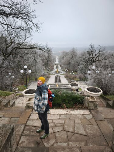Вода в источнике теплая. Вниз до озера спускается шикарная лестница. Похоже что летом там фонтаны и в озере можно купаться