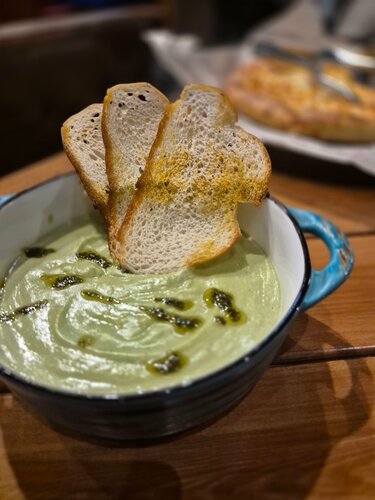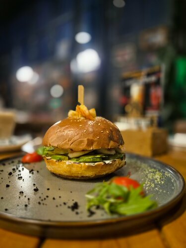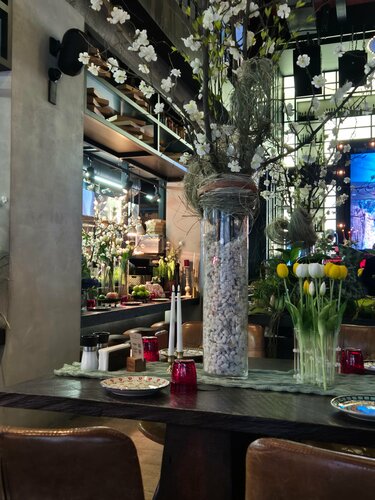 Атмосферный бар: музыка, стилистика, акцентые детали из фильмов Тарантино🔥 2 зала, красивый вид из второго. Отличный, быстрый сервис, тайминг подачи блюд соблюдают. Очень вкусно. Особенно хорош крем-суп из брокколи.