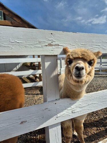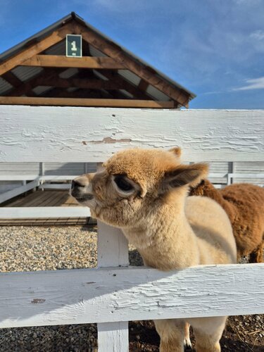 Ферма расположена по дороге к Медовым водопадам, очень удобно совмещать посещение обоих объектов в один день. Большая, ухоженная территория, можно приобрести классный мерч: кружки, носочки с шерстью альпак, шапки, футболки, худи, мягкие игрушки и множество другого. Шоколадные фигурки и маршмеллоу в виде альпак просто бесподобны😍 Билет - 1000 руб. и обязательно сразу купите пакетик с морковью, а лучше два, чтобы потом не бегать за добавкой😁 Потому что перед обаянием коз, овечек, альпак и кроликов невозможно устоять💔 К кроликам можно заходить на территорию вольера, и когда они собираются вокруг вас и встают на задние лапки или запрыгавают на колени, сердце просто тает🫠 Я в моменте была готова купить и скормить им всю морковь в мире😁 Есть зона отдыха с бесплатным вкусным травяным чаем и печенками, столиками, шезлонгами, зеркалом и умопомрачительным видом😍 Также есть зона с качелями.