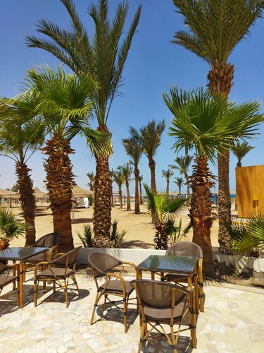 🏖Разнообразное питание, классный аквапарк, фонтаны, шезлонги, зонтики, "домики" на пляже и у бассейна, таф-таф возит на пляж от выхода из ресторана с 8.00 до 18.00. 🇪🇬Как положено бесплатные напитки, снэки, полотенца, вода и чай в мини-баре. Не функционирует фуникулёр, который есть на всех фотках и старый бар и аквапарк у моря с морской водой. 🌴😎Мы остались довольны.