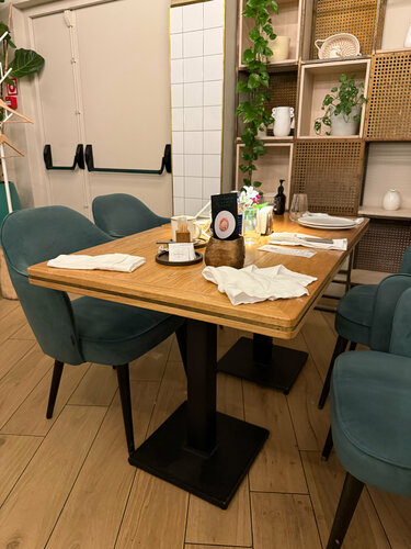 Зашли в кафе поесть перед отъездом. Пока мы шли по ресторану, было много свободных убранных столиков, где было бы приятно провести время. Но хостес решила проводить нас в самый дальний угол за предпоследний стол, где вокруг было все не убрано. Сидеть в такой обстановке крайне неприятно. Через 10 минут к нам не подошел официант, и мы покинули заведение.