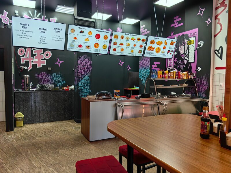 Кафе-столовая с бурятским колоритом около авиатехникума на 30 мест. Чисто, аккуратно, в меру просторно. Супы, второе, салаты, из особенностей - набор поз (хорошее тесто, мясо без претензий). Хорошей остроты морковь по-корейски, качественные соусы и широкий набор допов (вплоть до палочек) на столах Желаю владельцам закрепиться на этом месте и разнообразить меню национальной кухни 🙏