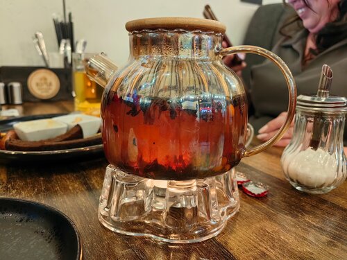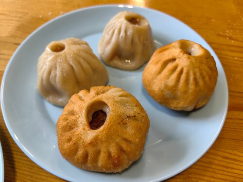 Неплохой наваристый бухлер на баранине, 4 вида бууз (включая рубленые, жареные и с бараниной). Облепиховый чай неплох, ребёнку понравился коктейль с орео