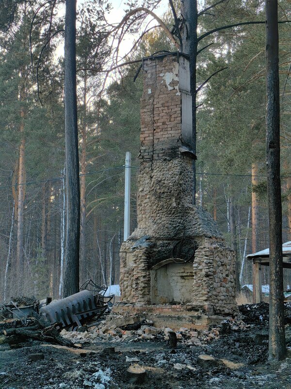 Странное место со странным подъездом через заброшенную базу отдыха. Вроде бы недавно сгорело одно из зданий, но по виду заброшено довольно давно