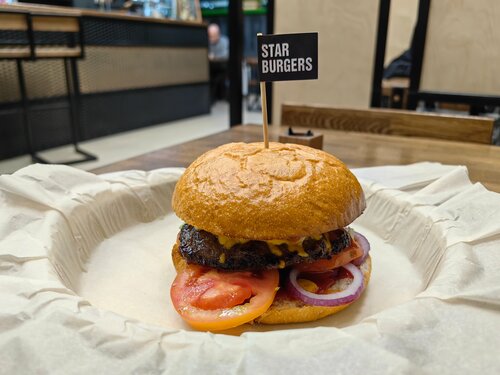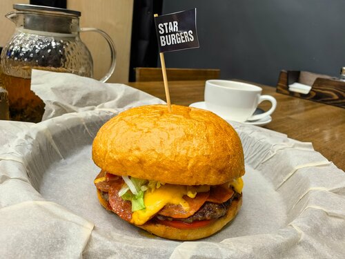 Небольшая, чистая и выдающаяся качеством приготовления бургерная на 20-25 мест. Каждый ингредиент бургера - весьма качественный. Булки прямо свежие, полноценная котлета из хорошего мяса, соуса и начинки так же не жалеют👍 Особенно порадовала правильная острота Амиго, именно то что нужно от острого бургера. На очередной заход продегустировал всю линейку острых бургеров: #2 по остроте - Техас и #3 - Пепперони. Техас неплохой остроты за счет одноимённого соуса, Пепперони - умеренно острый (годится для знакомства детей с острой пищей 😅). Все отличные Также обратил внимание на варианты чаёв - #1 Ганпаудер 💜 Отдельный респект Лейле 🖖