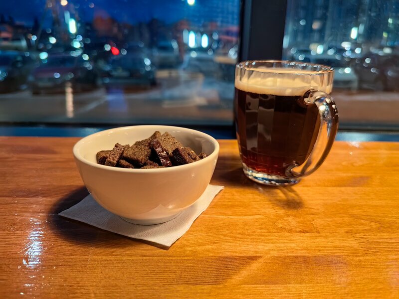 Небольшой тихий бар в Стрижах, интересный ассортимент разливного (включая Дункель). Есть выбор закусок, не слишком большой