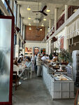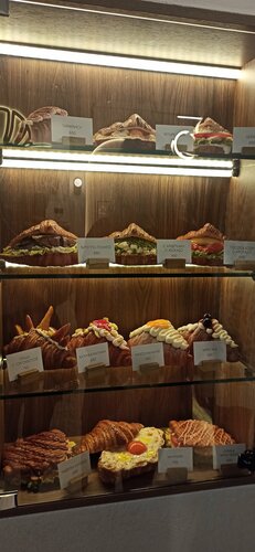 Были вместе с подругой в данном кафе. Очереди не было, как писали предыдущие комментаторы, достаточно спокойно разместились. После 21:00 зал был полупустым. Что по кухне и обслуживанию: 1. Брали сэндвич + круассан с пастрами и капучино. Кофе вкусный, сэндвич тоже, а вот круассан подвёл: он был холодным, хотя подогревали в микроволновке, а пастрами жёсткие. Не очень понравился 2. Обслуживание: вежливый и заботливый персонал, но есть два момента: - хаотично подходили несколько раз и спрашивали выбрала ли я. То есть за столом не закреплён конкретный официант и пришлось каждые 30 секунд говорить, что изучаю меню - из небольшого заказа вообще забыли про мой круассан, пришлось напомнить и официант побежал его греть 3. Взяла домой белый хлеб, он был очень вкусным, рекомендую Поэтому итого: посетить можно, стала бы возвращаться - не думаю