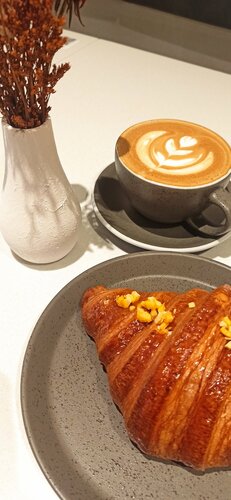 Пришли вместе с подругами, так как большие поклонники такого вида хлебобулочных изделий, и не пожалели. Это было вкусно! Попробовали круассаны: Цезарь, Хачапури и с манго. Все три были вкусными, большими по размеру, а значит сытными, и визуально радовали глаз. Кофе тоже весьма неплохой, приятное дополнение и плюсик в копилку заведения. Персонал вежливый и очень открытый, заряжает своим бодрым настроением. Сам зал просторный и чистый, комфортно находиться и расположиться компанией.