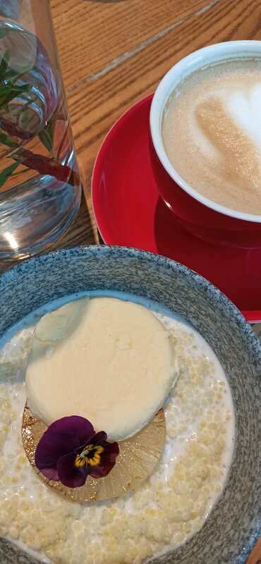 Приятное кафе недалеко от метро. Что из плюсов: - Попробовали кашу с ананасом и крем брюле, капучино и птичье молоко. Все позиции были вкусными - Достаточно быстро принесли еду, персонал заботливый и вежливый - Приятный дизайн и атмосфера внутри, чистый зал Что смутило: цена. Кажется, что всё таки высоковато для обычной кухни и данной локации