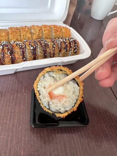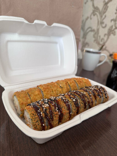 Не 1 раз заказывал здесь еду. На данный момент написания отзыва, это самая лучшая доставка еды в старом Вартовске по моему мнению. Роллы здесь большие и сытные, а самое главное очень вкусные, начинки много, из любимых позиций это Филадельфия с красной икрой, темпура с лососем и угрем. Ценник адекватный, часто бывают скидки, пиццы тоже здесь не плохие, брал ещё бургеры, очень большие и сытные!!. Брал сырные палочки, порции огромные, к пенному вообще отлично. Рекомендую данное место.
