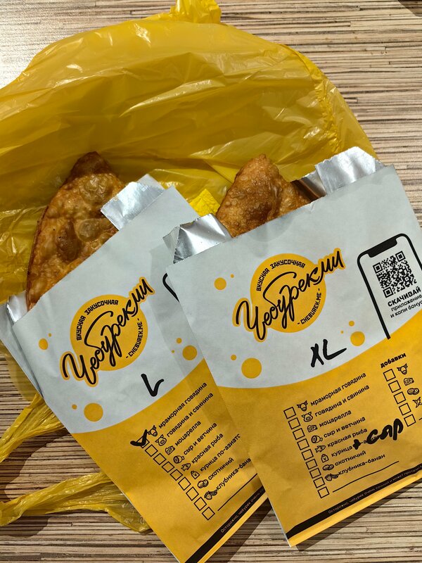 Пробовали первый раз, впечатления супер! Тесто отличное, в меру хрустит, в меру мягкое. Упаковка тоже на высоте, сразу видно с заботой о клиенте, чтобы не протек пакетик. Брали кур+сыр и говядину, оба понравились. В курице чуть не хватило соли, но это вкусовщина уже. Вернёмся попробовать остальные. Отдельное спасибо душевной женщине повару, как будто зашли к бабушке на чай с чебуречками!