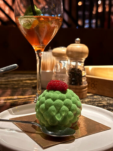 Посетила это место впервые, предложили сюда заехать поужинать. Внутри выглядит интересно, как минимум потому что много живых растений, паназиатская кухня и на некоторых посадочных местах записался мех для антуража - немного не понятна атмосфера , так как много всего, но визуал все равно уютный! Обслуживание очень милое, доброе, клиентоориентированность, помогут в выборе. По меню. Оно разнообразное, сладкое, острое, мясное, сладкое, в общем на любой вкус. Взяла салат с папайей и креветками Эби, на десерт манговый чизкейк с кокосовой пеной и чтобы согреться глинтвейн с медом и фруктами - который алкогольный если что, но вас сразу предупредят! Салат очень вкусный, мне нравится сладкая заправка с кунжутом и микс салатов, креветки большие, мягкие и одновременно сочные и хрустящие в панировке. Но папайи конечно очень мало, грамм 20. Десерт нежный, пена приятной и сладкой текстуры, жирности даже не ощущается. Чтобы разбавить классические десерты - по мне это идеальный вариант сочетания и вкуса! Глинтвейн хороший, но бывают вкуснее! Взяла ещё какао, он без сахара, поэтому если любите сладость - сразу просите сахар! По мне хорошее заведение!