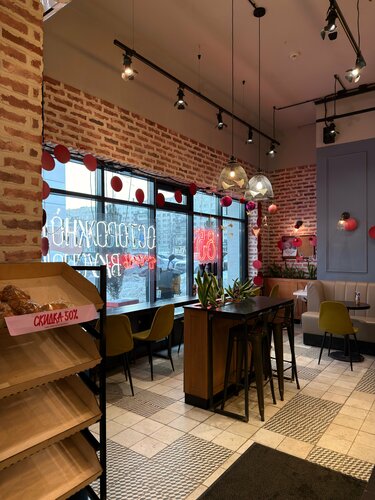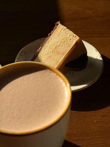 Зашли сегодня в обед попить кофе. Часто проходила мимо заведения и хотела как-нибудь посетить. Визуально оно ничем не примечательно, выглядит как многие кофейни. Подруга взяла себе пасту и латте, я какао и чизкейк орео. Паста очень вкусная была, порция приличная. Напитки хорошие. Чизкейк нежный, приятный. Субъективно на мой вкус чего-то не хватило. Но в целом как десерт достойно. Очень порадовало меню. Во-первых помимо сладкого и десертов, а их достаточно на витрине, есть вторые блюда и салаты. Но больше всего порадовало, что в меню есть завтраки, которые весь день можно заказать. Каша, шакшука, это то что хочется на завтрак, который по стечению обстоятельств бывает лишь днём, поэтому очень удобно сделали для клиентов. Внутри уютно, много столиков, у окна, по середине зала и прочие места для удобства. Заведение кстати небольшое, но есть огромная уборная , место для мытья рук , шкаф/вешалки для верхней одежды . Хочу отметь обслуживание. Безумно понравились девушки, которые предложили абсолютно все, поинтересовались всем и задали нужные вопросы по выбору еды. Рекомендации тоже были очень кстати. Считаю это очень важно в сфере обслуживания! Девочкам отдельно браво и молодцы! Недалеко от метро. Можно зайти взять с собой на прогулку и перекусить там. Думала будет посредственным, но мне понравилось и буду заходить ещё с подругой.