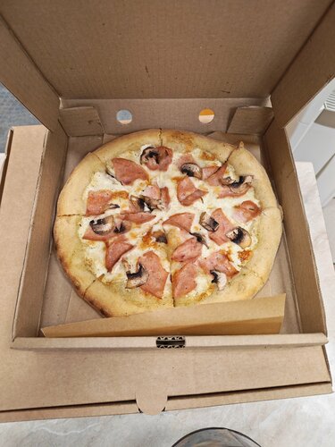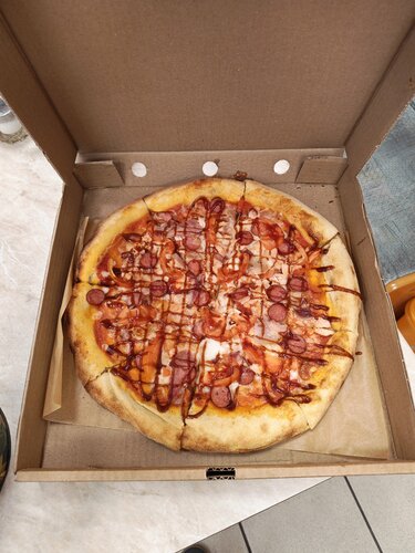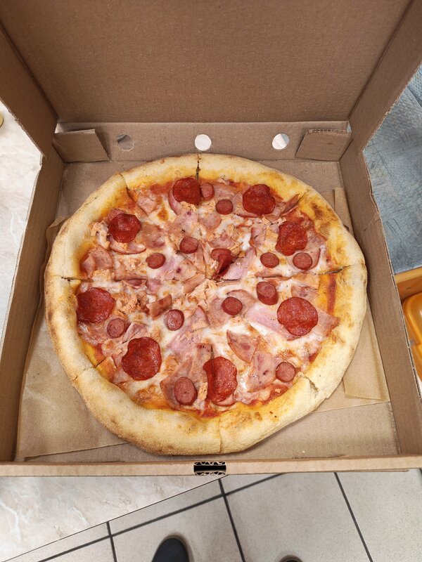 Брал пиццу на день рождения. Тесто вкусное, начинки достаточно. Пицца понравилась всем, кто ел. Качество хорошее, не фаст-фуд. Кстати, купленную пиццу можно съесть там же, столы имеются.