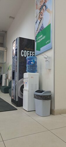 Электронная очередь. Чисто. Много мест для ожидания. Кофейный автомат, кулер. Туалет.