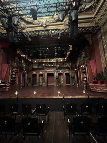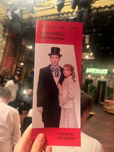 Театр на Трубной — это один из известных московских театров, расположенный в историческом здании. Театр был основан в 1989 году под руководством Иосифа Райхельгауза и назывался «Школа современной пьесы». Он располагается в здании, которое в XIX веке было знаменитым рестораном «Эрмитаж» Люсьена Оливье. Художественный руковод: Дмитрий Хананович Астрахан (с 29 июня 2022 года). Театр небольшой, фойе больше как проходная зона , гардероб и туалет ниже этажом, внизу немного тесновато, буфета нет, есть ресторан Люсьен Оливье вход в ресторан из фойе театра. Зрительный зал небольшой, стулья обычные , так как в разных постановках , происходит трансформация сцены, и посадочных мест, интерьер в зрительном зале очень изысканный, исторический, много лепнины, большие зеркала, стены украшают зеркальные медальоны с ангелочками (путти), на потолке — роскошные люстры. Очень красиво . Спектакль «Красавец мужчина» в постановке Дмитрия Астрахана — один из ключевых в репертуаре Театра на Трубной . Это современное и яркое прочтение классической комедии Островского, сильная и стильная постановка. БРАВО! Акцент на психологической драме и пути нравственного падения главного героя, которого сегодня можно назвать нарциссом, абьюзером или альфонсом. Помимо костюмов, ещё необычная сценография и живая музыка в исполнении оркестра. Главные роли исполнены великолепно : Аполлон Окоёмов — Родион Вьюшкин, точное попадание в образ, харизма зашкаливает. БРАВО! Зоя Окоёмова — Анастасия Акатова, тонко, эмоционально, сильно, на разрыв . Умница! БРАВО! Сосипатра - Елена Санаева ( низкий Вам поклон, великолепно ) БРАВО! Спасибо большое организаторам, за прекрасный вечер! ❤️
