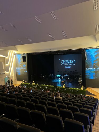 Концертный зал находится недалеко от метро Октябрьское поле, здание небольшое, на первом этаже фойе, гардероб, туалет, на втором этаже зрительный зал, удобный, очень хороший подъем между рядами, думаю с любого места будет хорошо видно, я сидела 4 ряд 29 место, видно хорошо, чуть-чуть был закрыт обзор левой стороны, но это не помешало насладиться музыкой и рассмотреть детали. Посетила концерт Сумерки в исполнении СимфоМультимедия x Nella Musica Orchestra. Очень профессиональный коллектив, сильные голоса солистов, красивая музыка, сценография с использованием кадров из фильма Сумерки. Интересно, профессионально, талантливо. Спасибо за прекрасный вечер! ❤️ Браво 👏