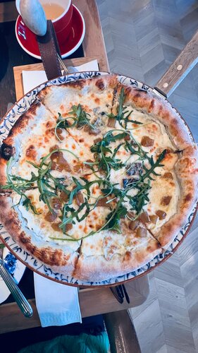 Посещение было в субботу, бронировали стол заранее, в момент прихода посадка была полная. Ресторан имеет большое светлое пространство, разделение на несколько зон , наш столик был на две персоны вторым рядом от окна, сидеть было комфортно. Несмотря на полную посадку гула в ресторане не было, столики стоят на комфортном расстоянии. Обслуживание замечательное , заказ приняли быстро, блюда все приносили ко времени. Удивили цены почти все блюда по 600 рублей. Все блюда по вкусу были вкусными, салаты из свежих хороших овощей , заправка замечательная , пицца на тонком тесте очень вкусная , горячее очень понравилось пюре было нежное, цыпленок приготовлен идеально . Десерт очень порадовал , чай был насыщенный и вкусный. Спасибо большое! Очень приятное место, вернемся ещё! Вы большие молодцы!