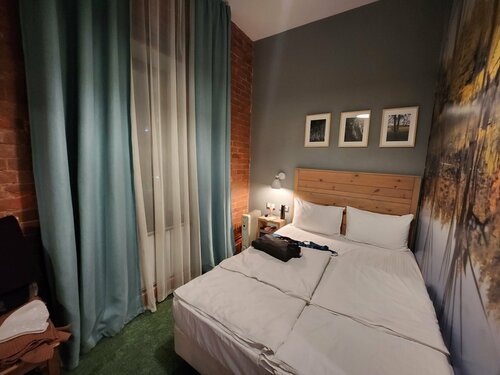 Хороший отель. Жила 5 суток в двухместном номере с собственным с/у. Чисто, аккуратно, отличные матрасы, тихо (слышно было только, как соседняя дверь захлопывалась), есть полотенца, фен, мыло/шампунь, 2 пары тапочек. Завтрак был в ресторане "Печь" при отеле - вкусно, красиво, за 800 р можно вполне сытно поесть. Из минусов - слабоват wi-fi, мне нужно было по работе скачать тяжелый файл и он ооочень долго скачивался. На общей кухне только воду горячую набирала, а так все необходимое для готовки/разогрева еды есть. В целом впечатления от отеля отличные.