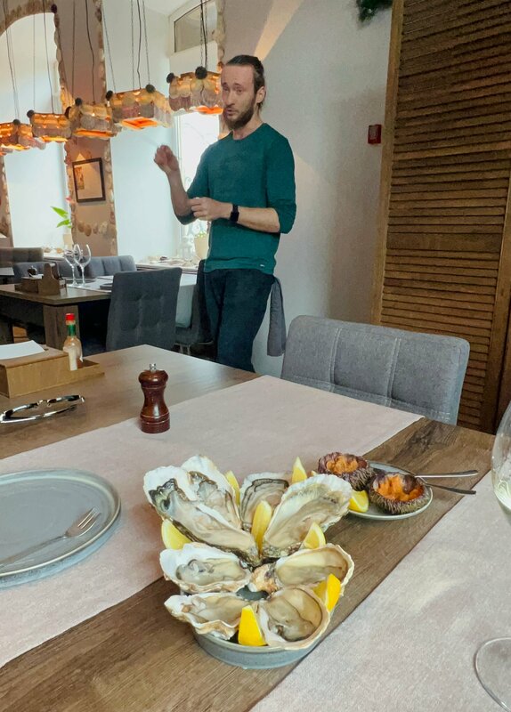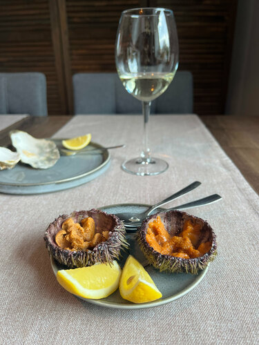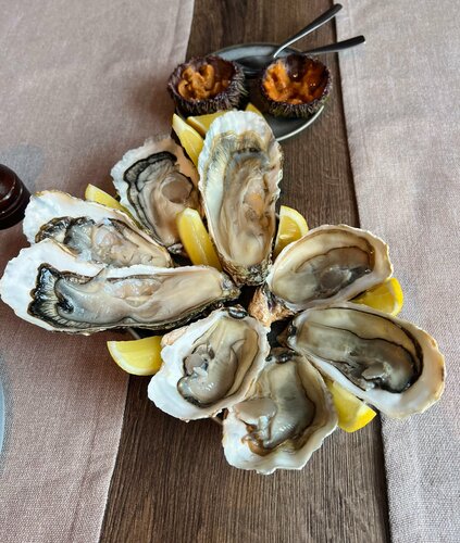 Для тех кто любит морепродукты - это место должно быть фаворитом! А вот для таких новичков как Я, обязательно к посещению! Чтобы точно влюбиться раз и навсегда в эти деликатесы)) Заведение небольшое, но очень уютное. За барной стойкой рядом с которой расположен небольшой аквариум вы встретите приветливого Александра! С самых первых минут мне показалось что он знает на 💯 весь свой ассортимент, но оказалось не показалось! Александр подробно рассказал про каждую устрицу, не только откуда она приехала но и какой у нее вкус и история. Определившись с тем что попробовать, выбор пал на Дальневосточные и Китайские устрицы, в качестве напитков нам предложили воду с лимоном или вино. Удивила меня также подача устриц! Нам не просто их принесли и пожелали приятного аппетита. Тут началась целая лекция о том как правильно их есть, на что обратить внимание чтобы точно знать хорошая устрица или нет. С каким соусом их можно сочетать и многое другое)). Я осталась под огромным впечатлением и действительно могу сказать что влюбилась в этот деликатес😅. Еще были ежи, но тут я особо сказать ничего не могу, так как мне данный вид морепродукта не зашел. Огромное спасибо за полученные эмоции и новые открытия! Теперь я точно знаю отличное место чтобы побаловать себя вкусненькими морепродуктами и хорошим настроением под бокал отличного вина!
