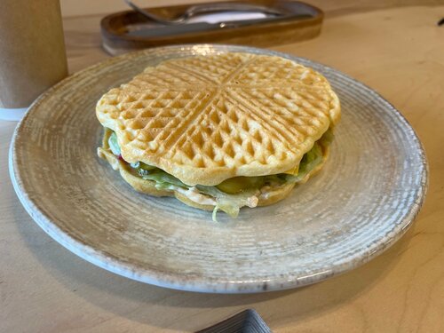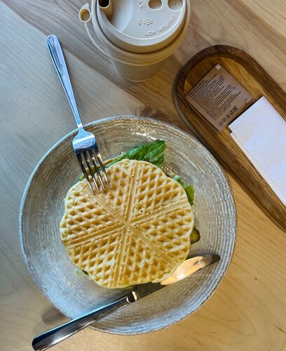 Отличное заведение чтобы выпить ароматный кофе и вкусно перекусить. Приятная атмосфера и вежливый персонал! Все в светлых тонах как будто расслабляет)). Вафли действительно очень сытные! Пробовали мясные и вернулись потом за сладкими. А так же тут очень вкусный кофе. Меня поразил кофейный глинтвейн!