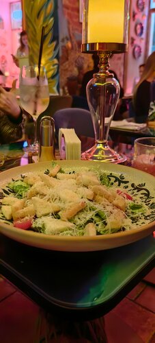 Не ресторан, а одно название. По еде: заказывала салат Цезарь, не думала, что салат можно испортить, но у них получилось. Абсолютно безвкусный, наложили много листьев салата и сухарей, курица сухая, указано, что на гриле, по факту просто какая то магазинная вареная. Заправка салата - разбавленный майонез. Свежевыжатый сок из грейпфрута, оказался смузи перемолотым в блендере, где пол стакана отходов и перемолотых косточек. Заказанное ризотто выглядело, как блевотина, совсем не эстетично и не похоже на ресторанное блюдо. За соседним столиком видела, как выглядит паста - аналогично неэстетично и не аппетитно. По атмосфере и интерьеру: порадовала живая музыка, на этом все. Столики стоят плотно друг к другу, как в дешевых кафе. Некоторые столы располагаются совсем рядом с туалетом, но это, извините, кошмар. По обслуживанию. Обслуживающий персонал как роботы, ни улыбки, ни уважения. Только парень, который стоял за стойкой у входа был вежливым и приветливым. Официантка вообще на своей волне. Итог: не советую к посещению данное заведение.