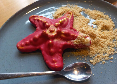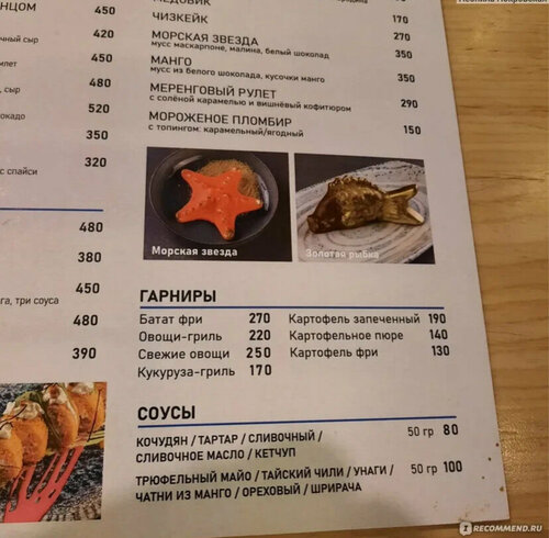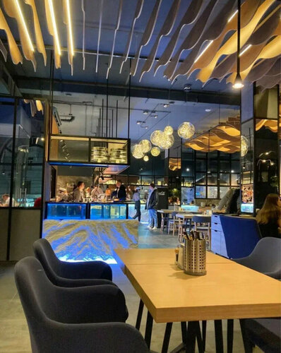 Это место, в котором вкусно и красиво ВСЕ! Свежие морепродукты, не сложные и вместе с тем гармоничные блюда по составу, вкусу, разнообразию и внешнему оформлению. Лучше есть прямо там. Заказывала в гостиницу (для меня этот город командировочный), блюда горячие, но чего-то не хватает. Наверное впечатлений))). Десерт «Морская звезда» это особенное! В красном шоколаде маскарпоне! Рядом магазин морепродуктов с разнообразным ассортиментом как во Владивостоке. Очень высокий уровень во всем и цены не космические.