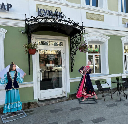 Жила в гостинице Уфа-Астория. По вечерам в поисках ужина прошла две пиццерии и кофейни и ноги сами привели с старинное дореволюционное здание в которое зазывала реклама - девушки в национальных костюмах. Каждый вечер наслаждалась семгой на пару. Была уверена что мне разогреют уже готовый стейк, но нет))) все делали на моих глазах, с дивным бешамель. Выпечка свежейшая. Разговорились с хозяином. Очень серьёзный подход к имиджу и традициям. Это не просто место где едят, это центр культуры. Мне подарили курай! Внучка была счастлива. Музыка очень красивая национальная! Очень рекомендую!