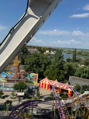 Небольшой , но красивый парк развлечений, находится рядом с морем, была в июле в разгар дня (12-13 часов), поэтому солнце сильно подпекало, стоит посещать в жаркое время года в вечернее время.